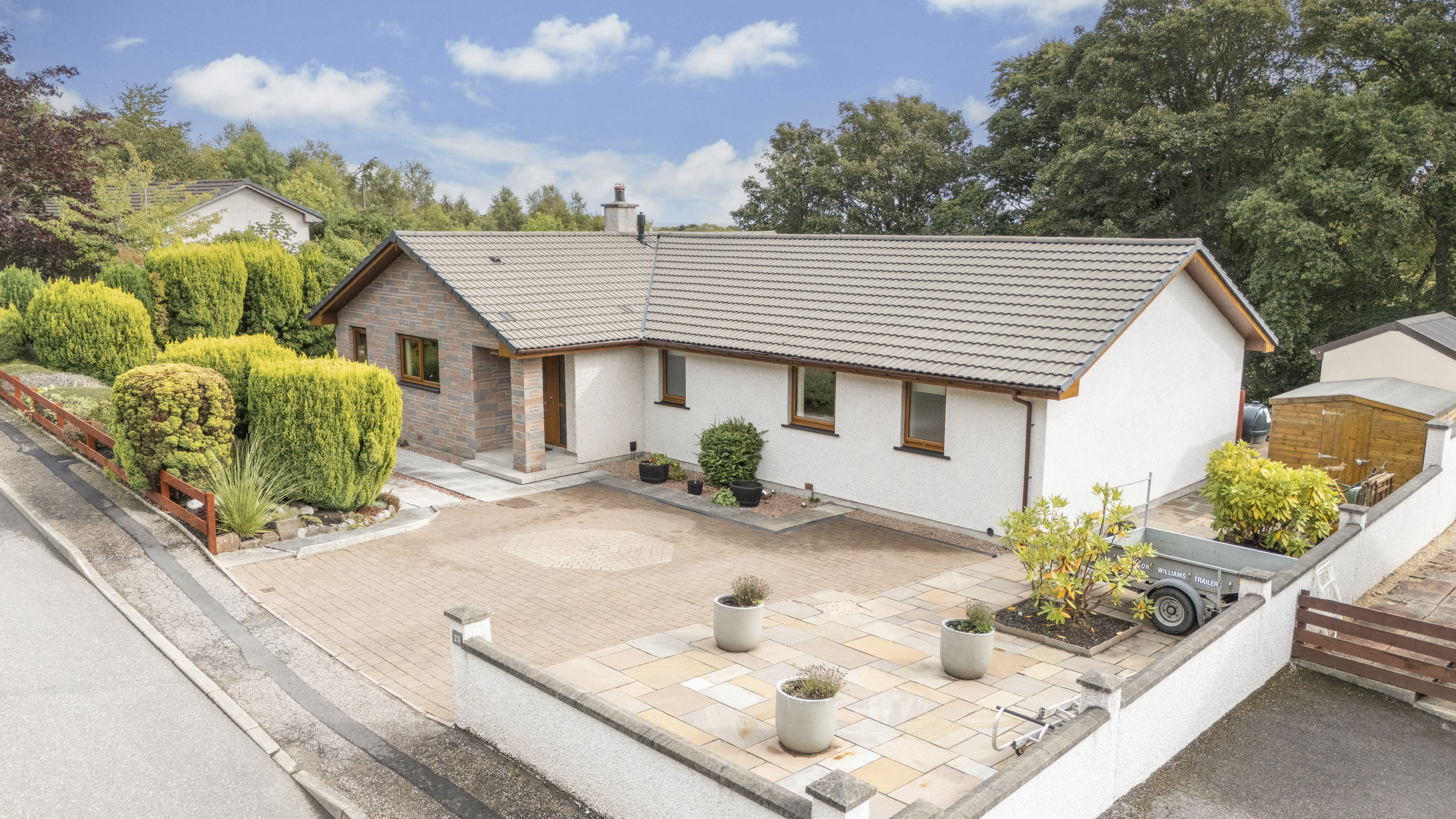 This well presented, detached bungalow is located in the sought after area of Ben Bhraggie drive on the edge of the village of Golspie and is a short walk in to the village and to all amenities. This delightful and immaculate property was built circa 1988 with later additions circa 1997 and offers excellent family accommodation comprising a bright living room with patio doors leading out to the rear garden, a nicely proportioned kitchen/family room, utility room, 4 bedrooms, a walk-in store room, shower room and bathroom. The property is fully double glazed and benefits from oil fired central heating. Externally, the garden ground lies to the front, side and rear of the property and have been beautifully landscaped with pathways, flower beds, shrubs and bushes. The front and rear have been largely paved allowing ideal settings for outdoor entertaining. A large driveway provides off street parking. Only by viewing can this property be truly appreciated.