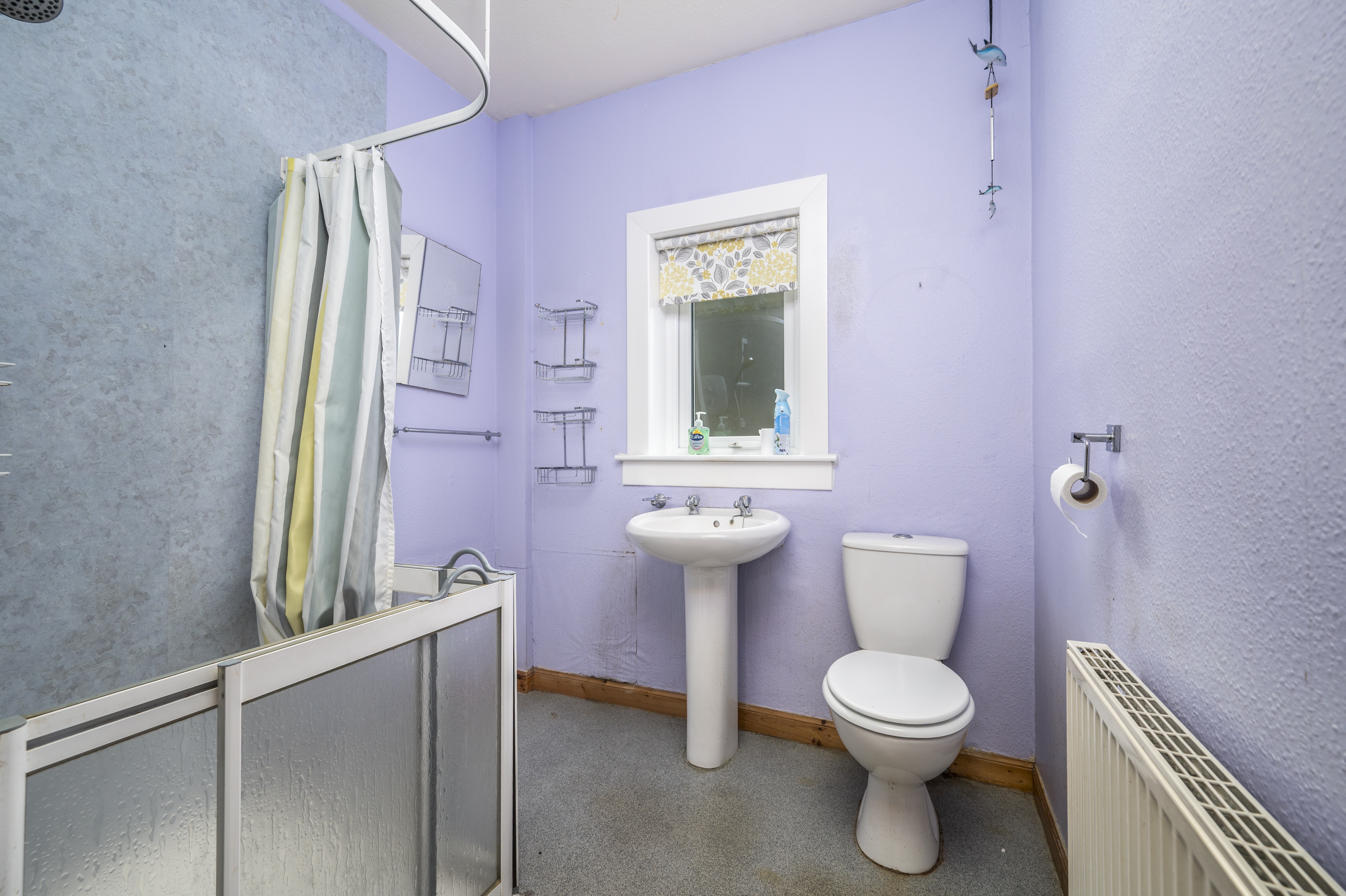 Comprising WC, wash hand basin and shower fitted with an electric Mira shower unit and fully lined with wet wall panelling. Non-slip flooring. Rear facing window with roller blind.