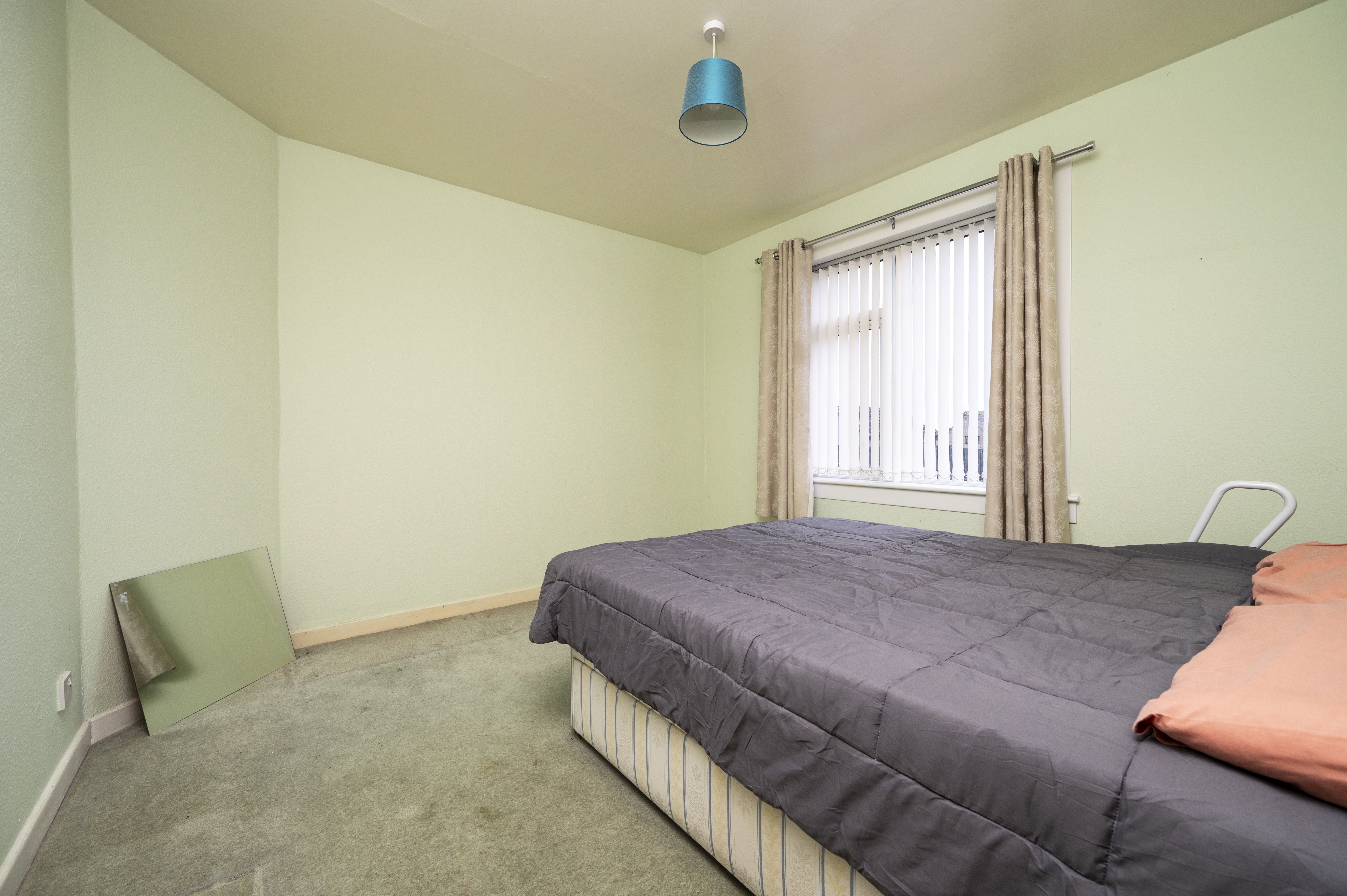 Nicely proportioned and bright bedroom with front facing window looking out towards Ben Bhraggie. Carpet. Curtains. Vertical blinds. Radiator.