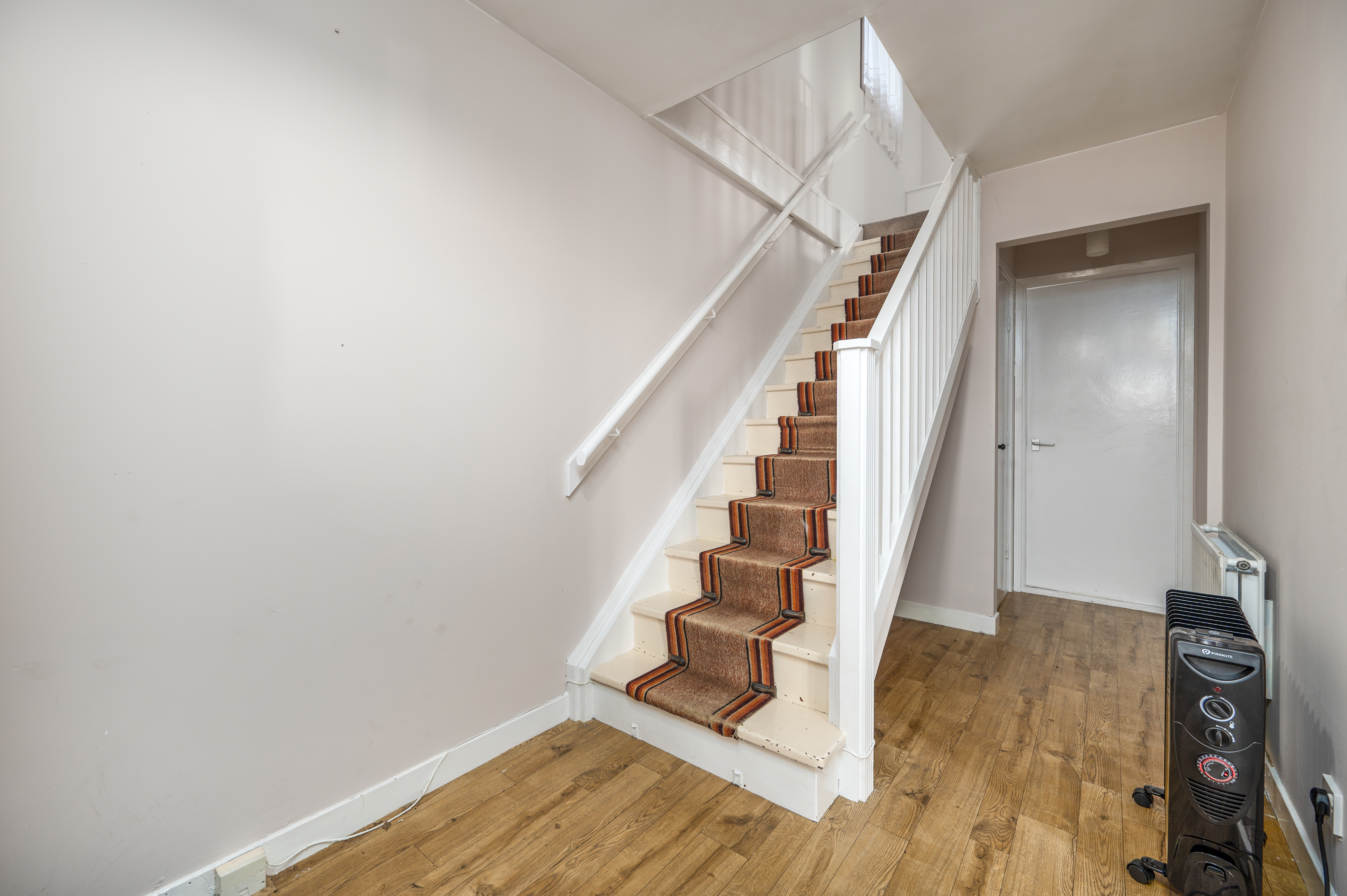 From the front hallway a staircase leads up to the landing.
